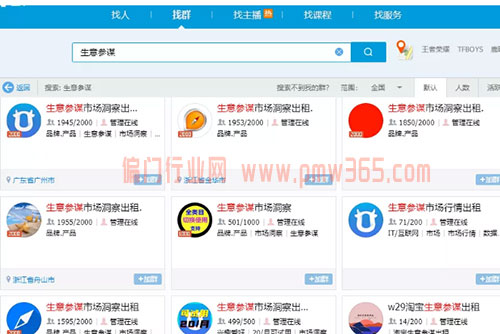 第一步打开群搜索:生意参谋,很多群在卖生意参谋出租,直接加群,能加的群都加上。