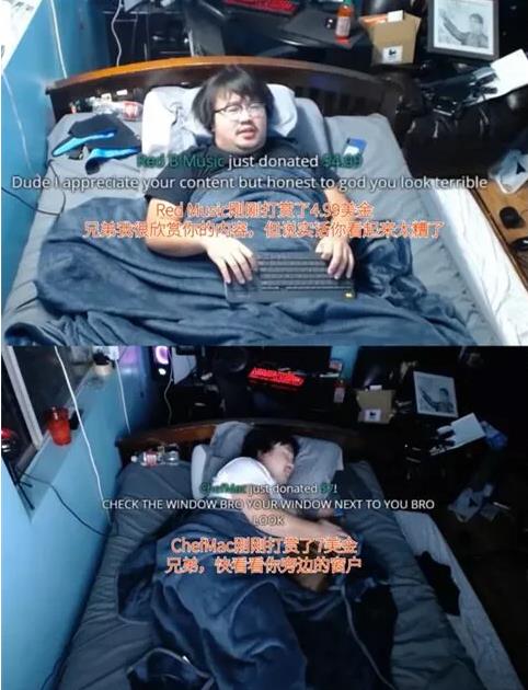 案例来自Twitch平台,与我们很早二哥微学堂博客上发布的“直播睡觉求打赏”的玩法不同,这位小哥另辟蹊径,做的是以“打赏折磨他不睡觉”为卖点的直播。