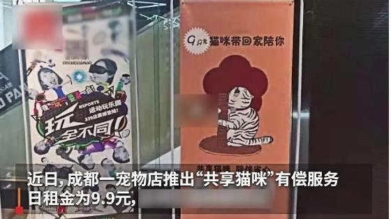 我要说的,不是当下火爆的猫咖,而是“租猫”服务!案例宠物店位于成都339购物中心,店招宣传语:9.9元,猫咪带回家陪你!